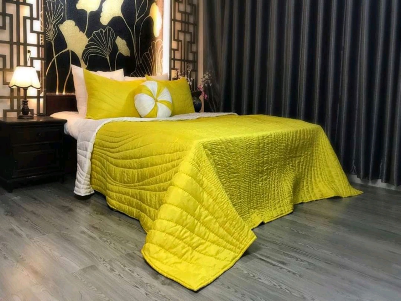 Một số mẫu chăn ga giường màu vàng dành cho phòng ngủ hiện đạiBộ chăn ga gối thêu Tencel lụa cao cấp: "Hoa anh thảo"