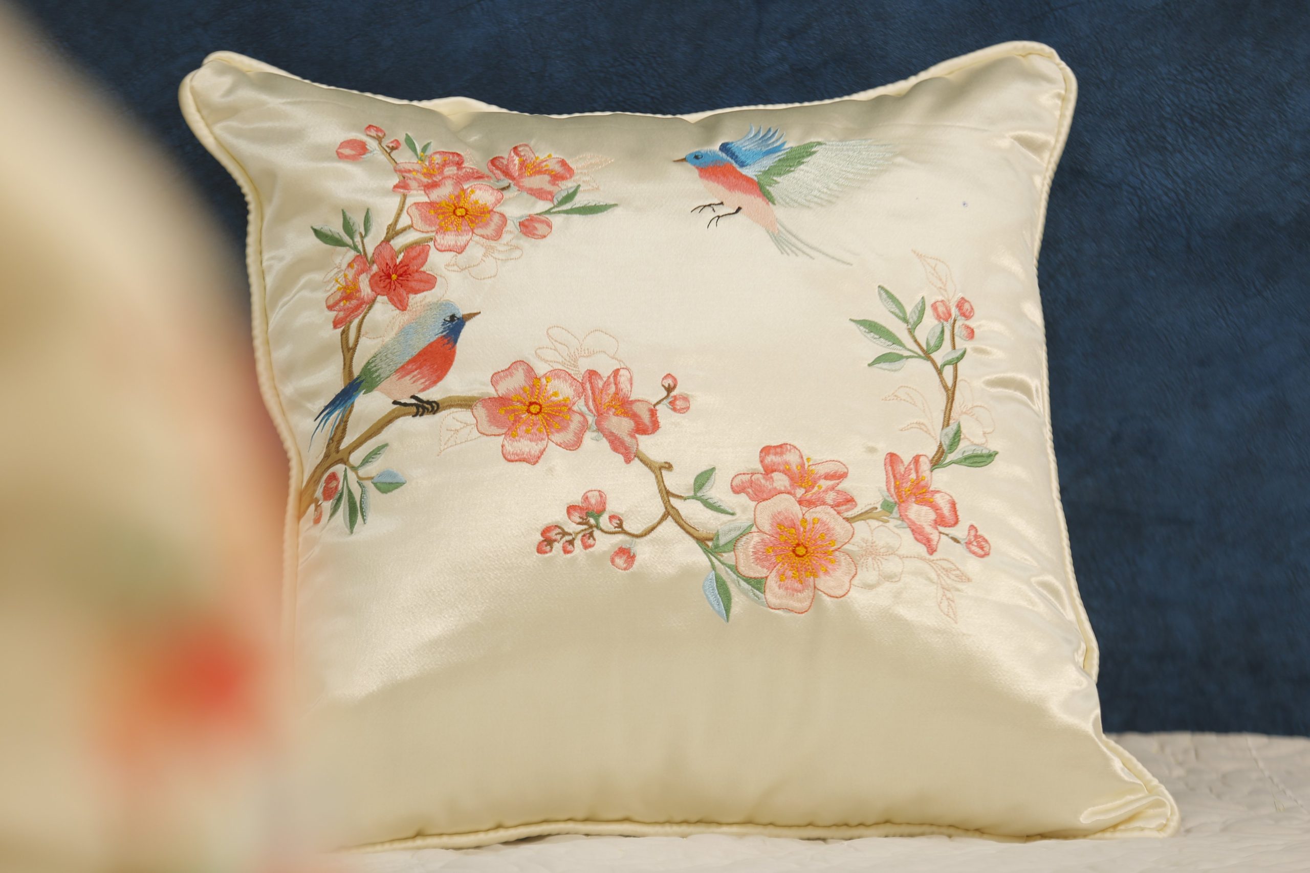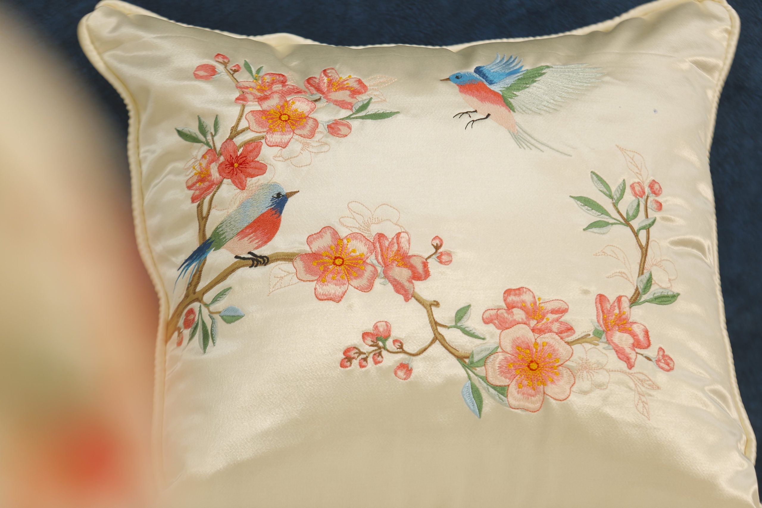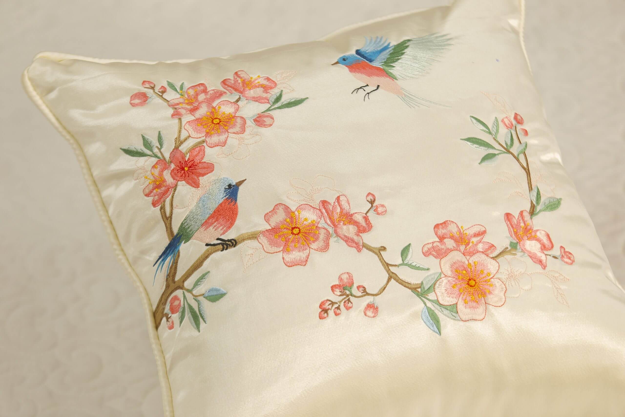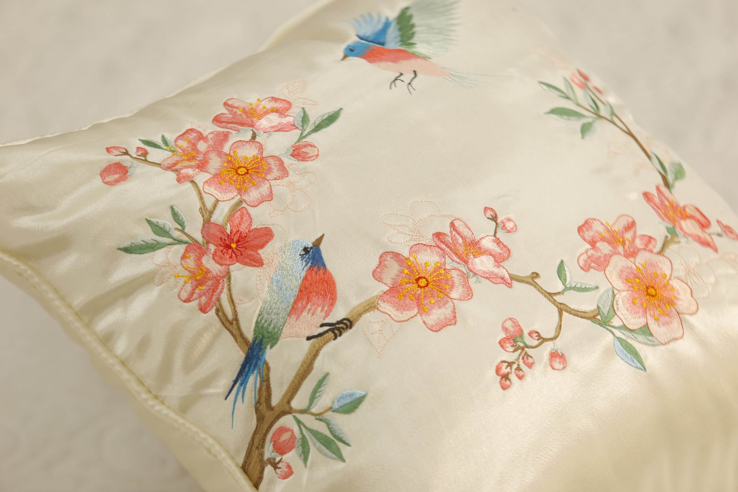Gối thêu tay hoa đào