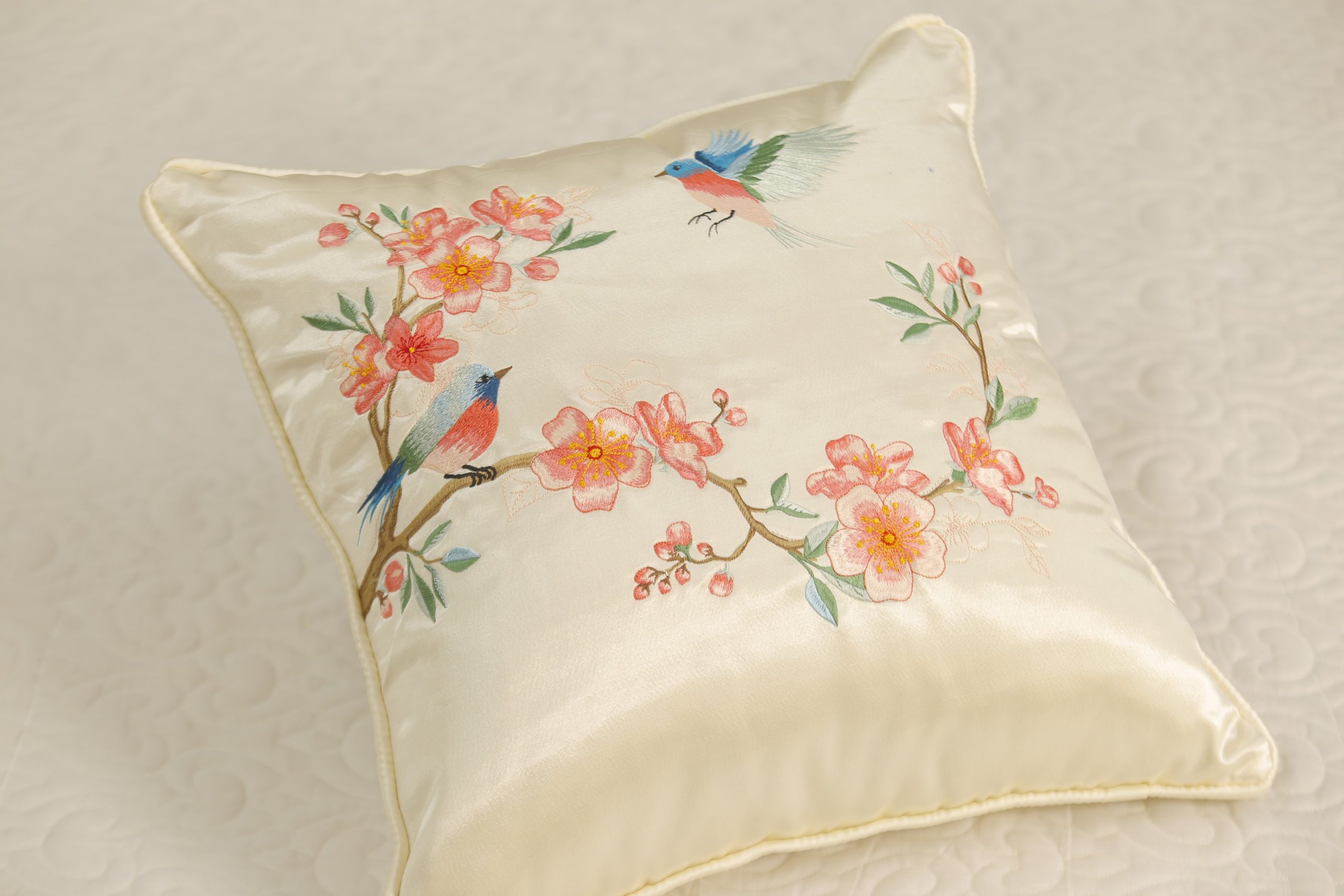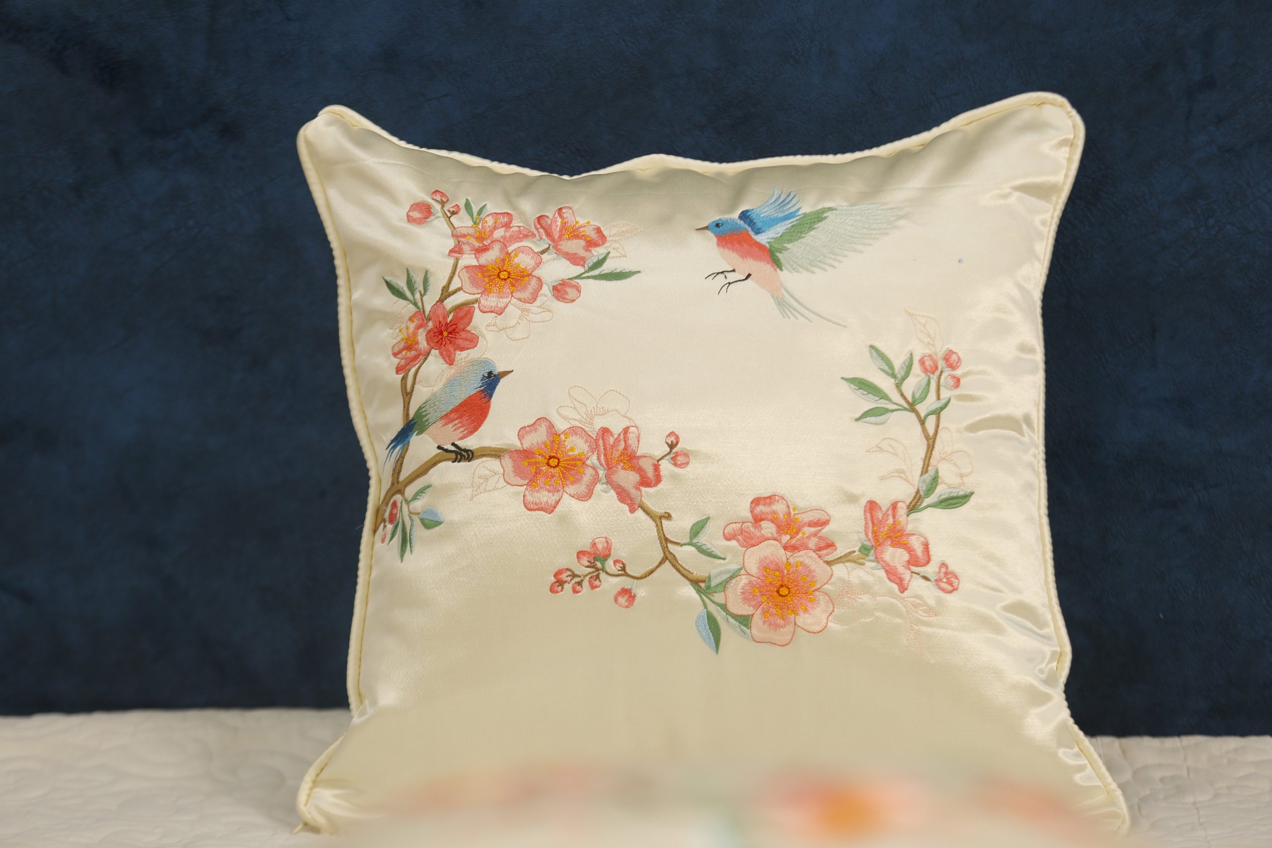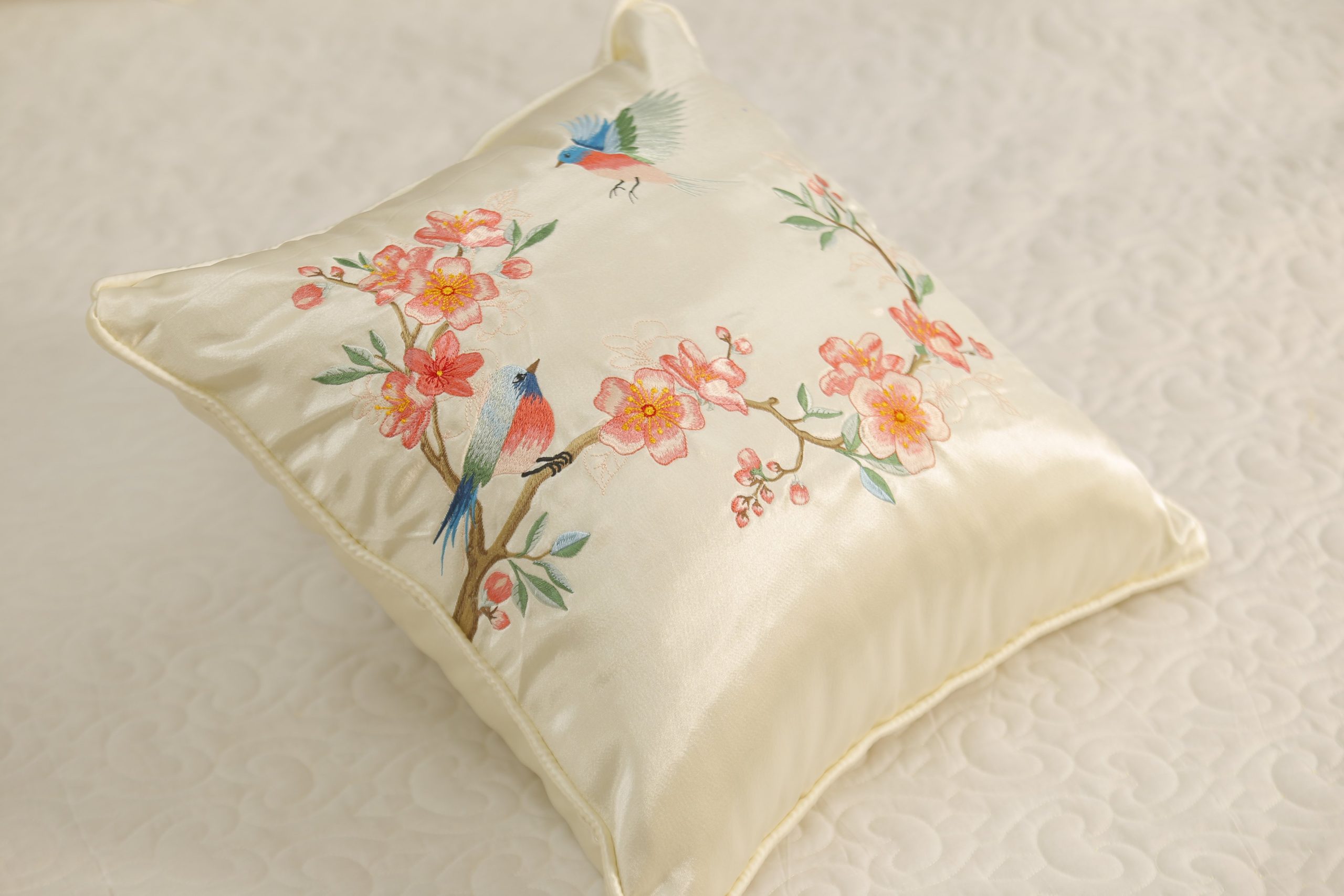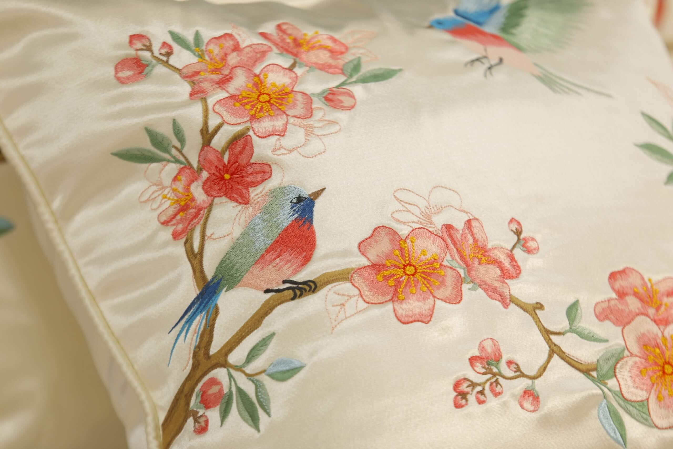 Gối thêu tay hoa đào