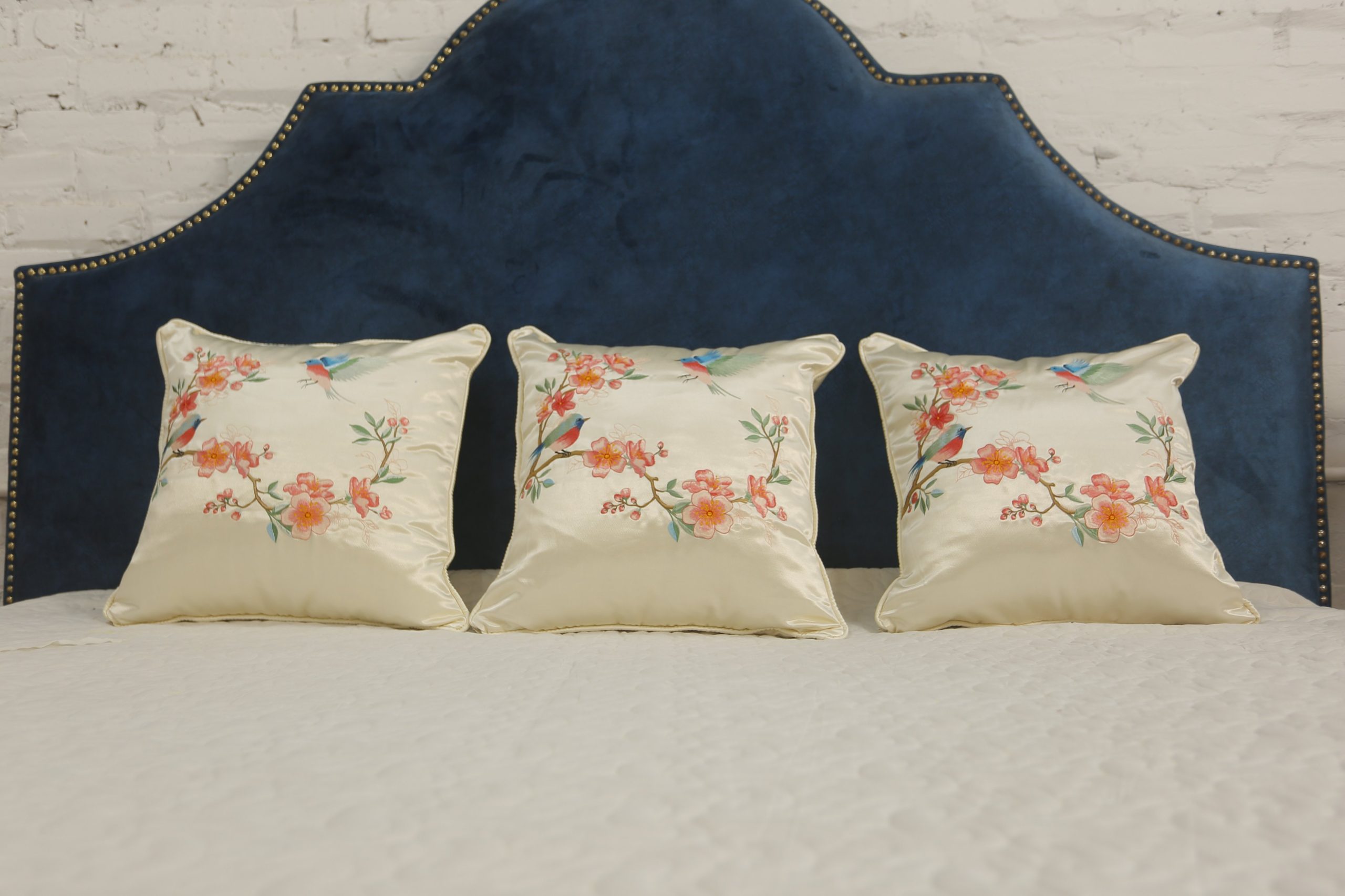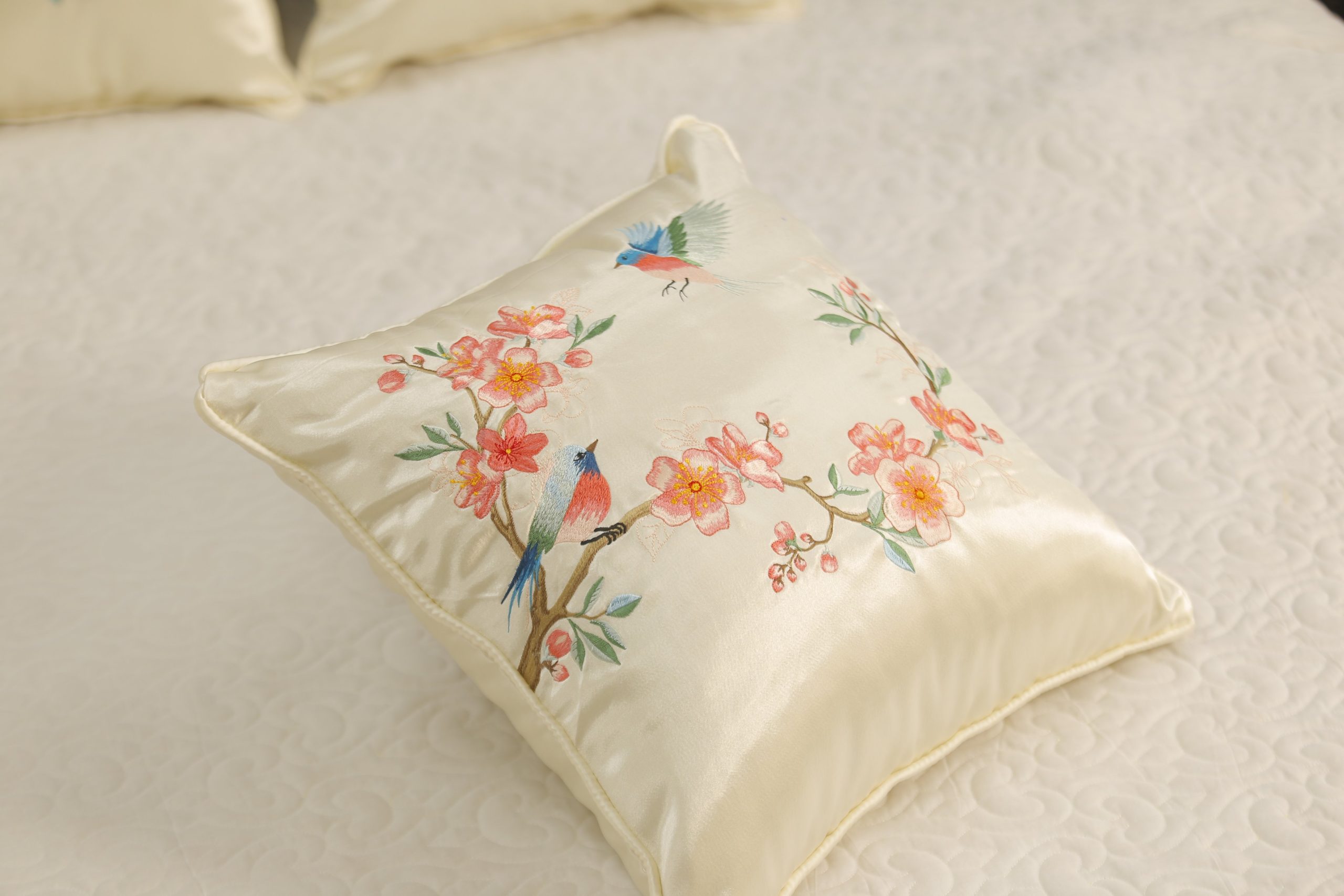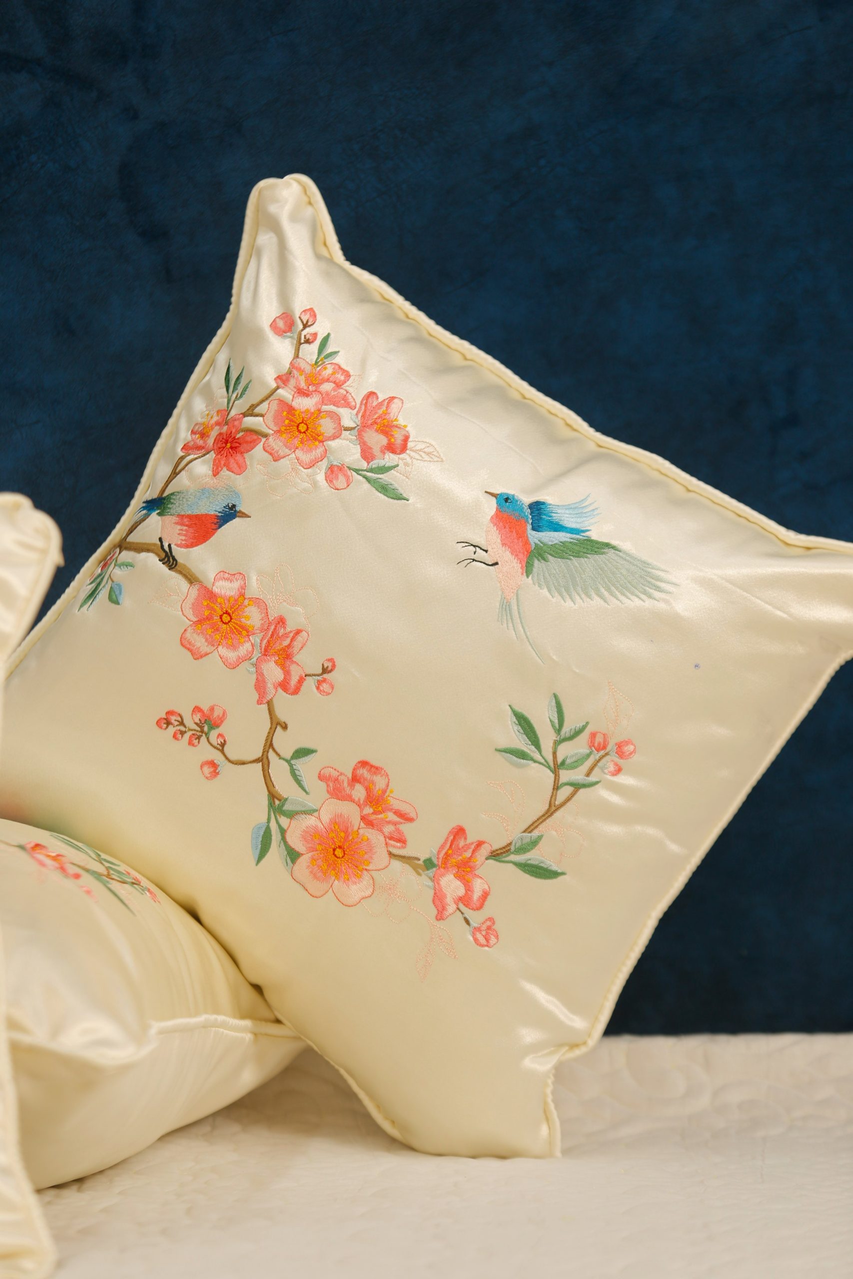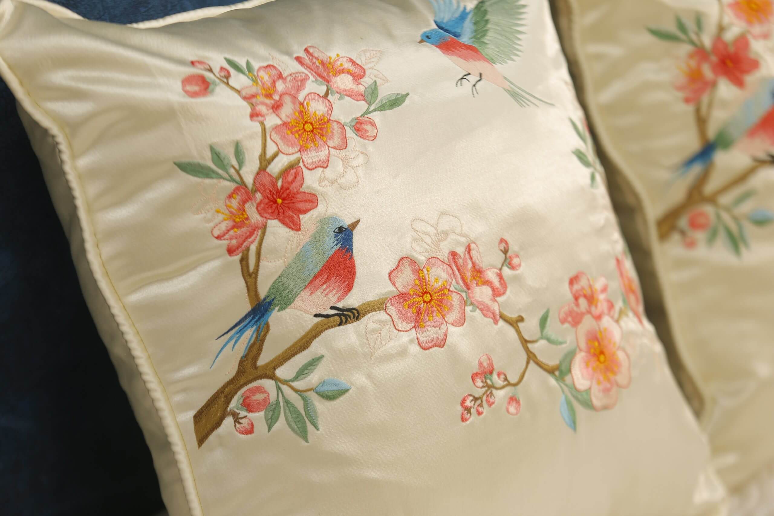 Gối thêu tay hoa đào