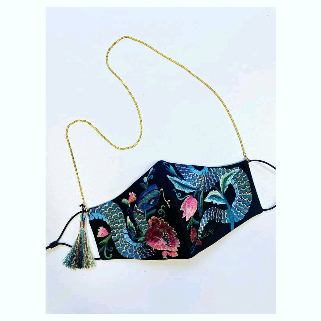 Khẩu trang thời trang thêu Tứ Linh: Mẫu "Phụng"