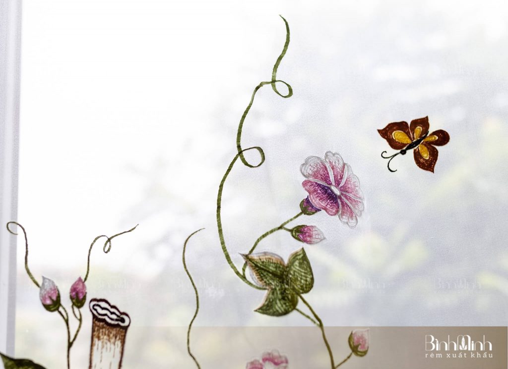 Cùng ngắm nhìn một số hình ảnh mẫu rèm thêu hoa bìm bịp được thiết kế bởi NTK Lý Nguyễn: