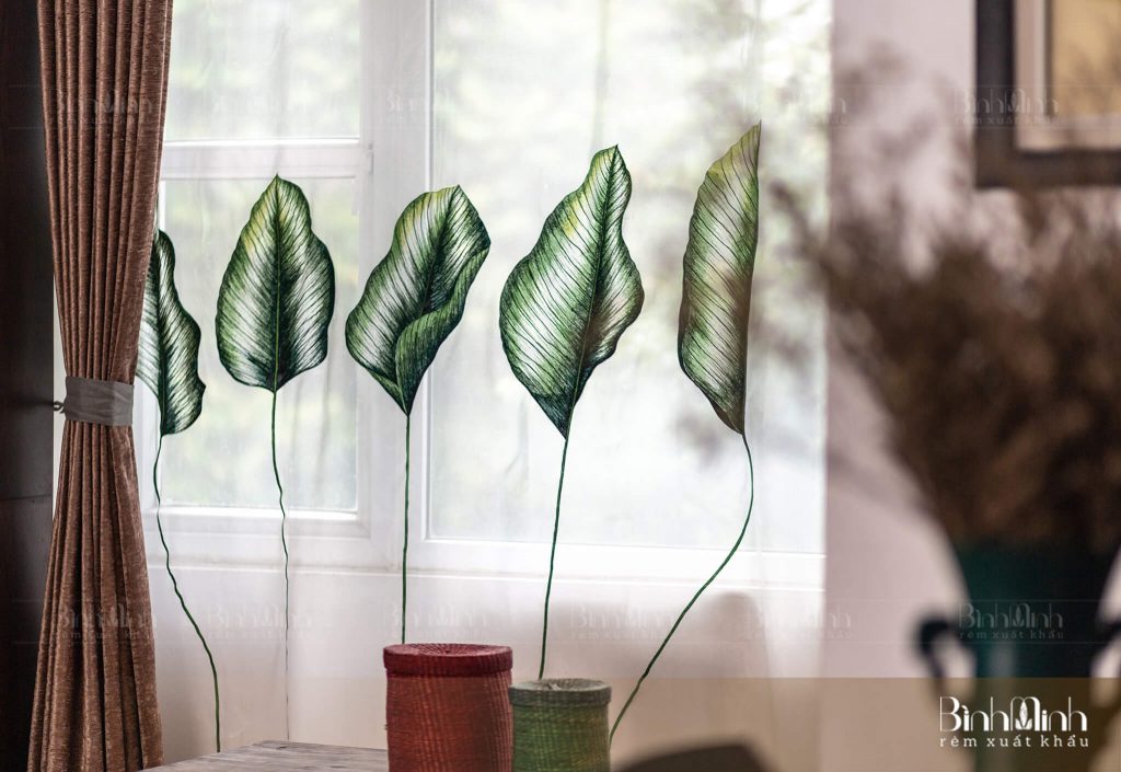Nằm trong BST rèm thêu của NTK Lý Nguyễn, mẫu rèm thêu họa tiết Tropical sẽ mang đến cho căn phòng của bạn sắc màu thiên nhiên xanh mát đầy sức sống của khu rừng nhiệt đới.