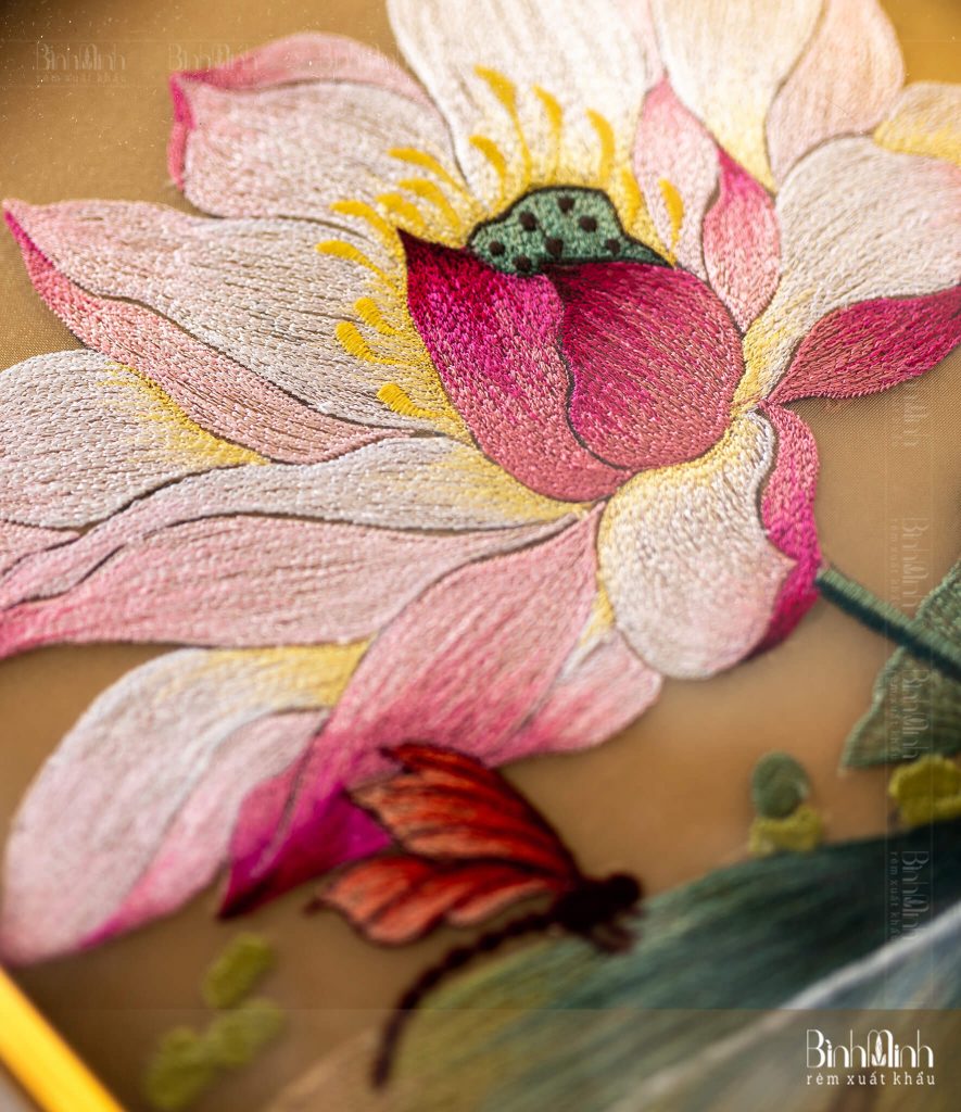 Tranh thêu hoa sen - Tranh thêu tay cao cấp Bình MinhTranh thêu hoa sen - Tranh thêu tay cao cấp Bình Minh